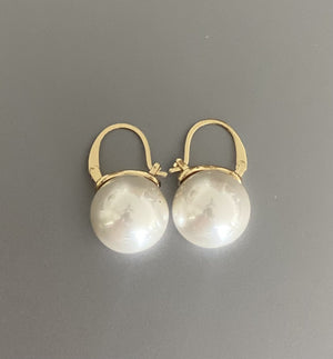These 12-13 mm faux white pearl drop earrings are a classic staple pair for daily wear . They are 18K yellow gold plated.