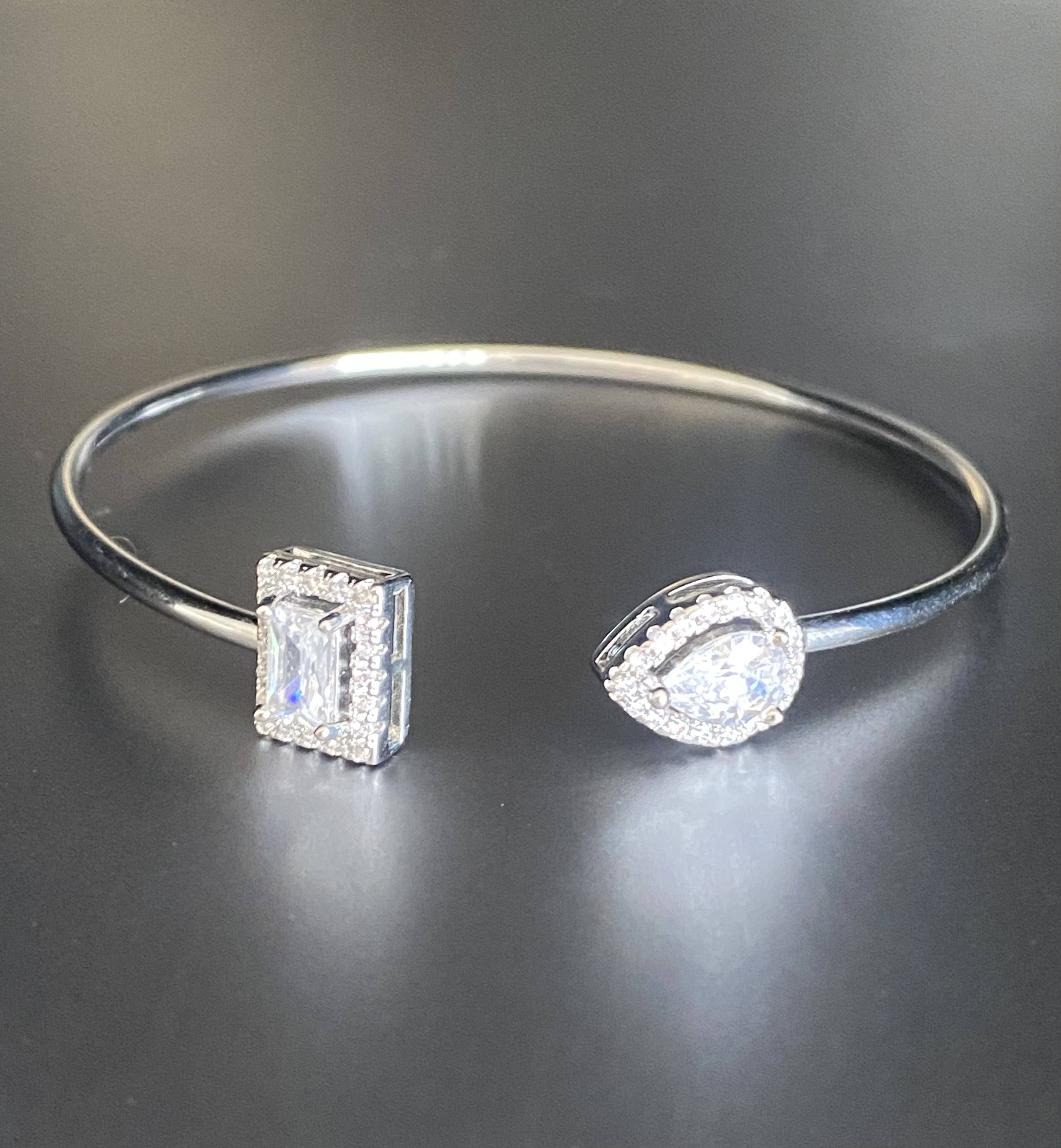 Open Ended Emerald & Pear Cut Solitaire Bangle