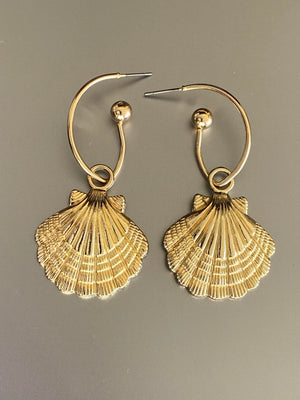 These beach-inspired 14K yellow gold plated scalloped seashells drop from plain balis that have push-back posts. Ideal for girls & women of all ages, these lightweight dangle and drop earrings make a fabulous gift for someone special or simply a treat for yourself